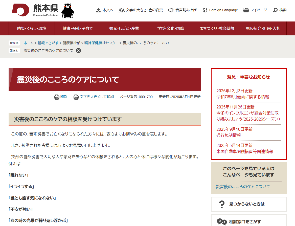 熊本県 震災後のこころのケアについて