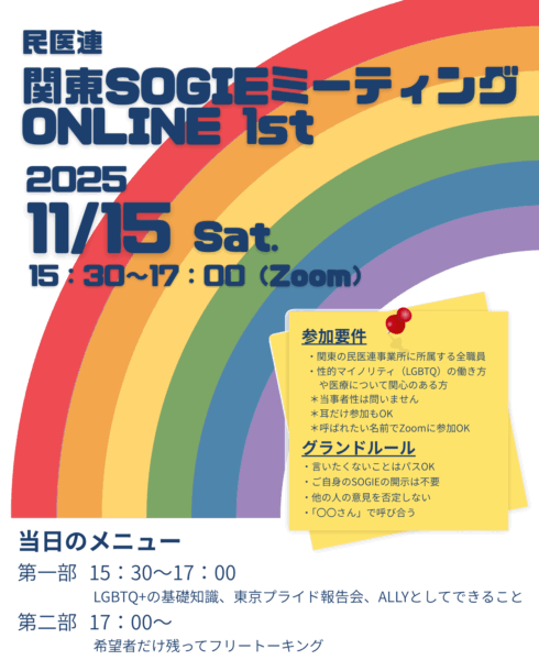11月15日(土)に「民医連関東SOGIEミーティング」をオンラインで開催しました。